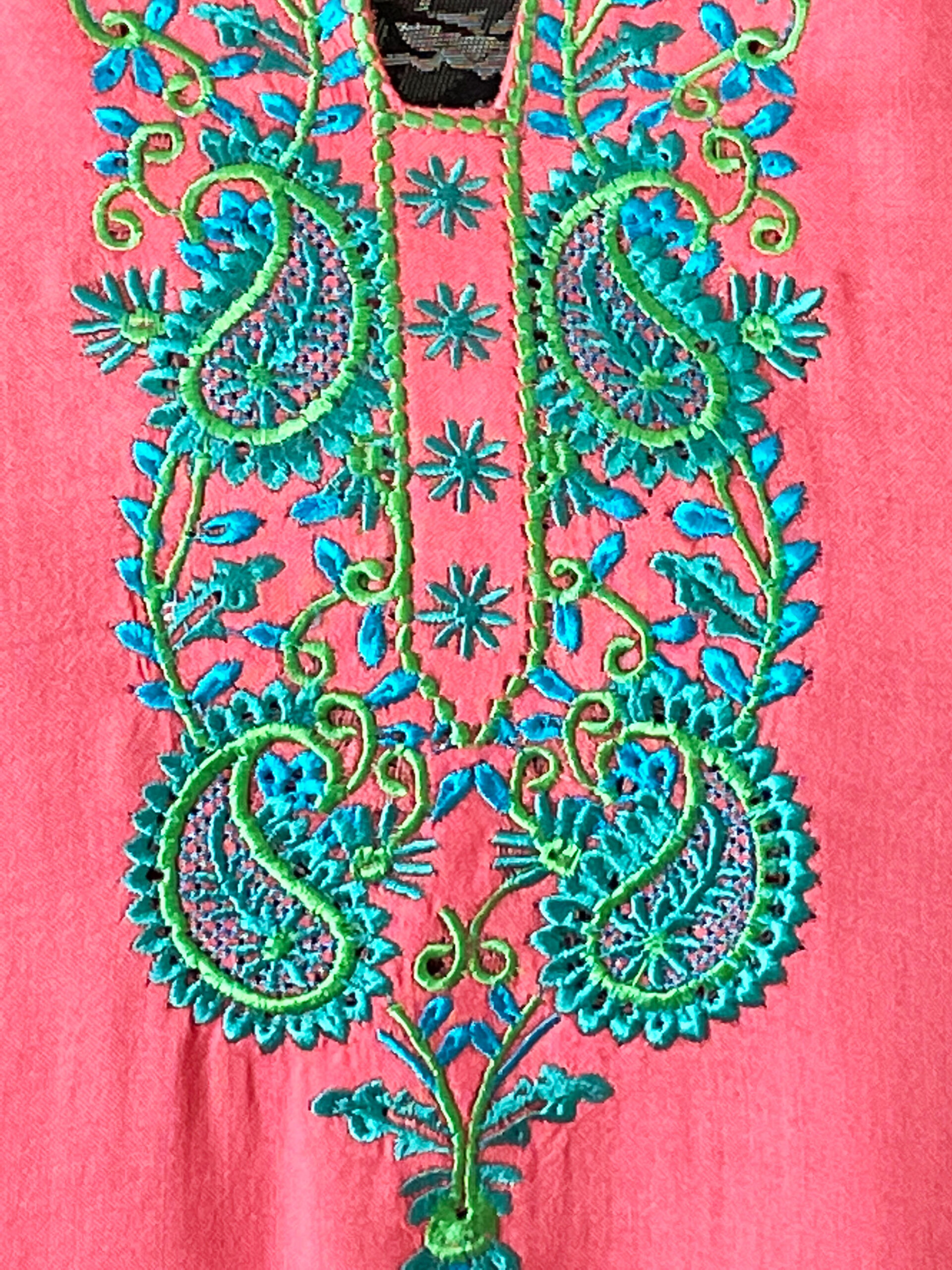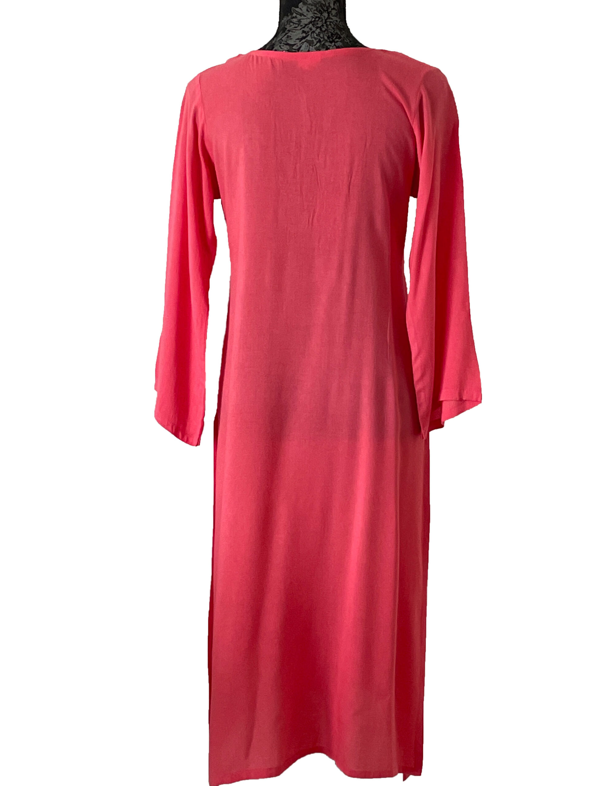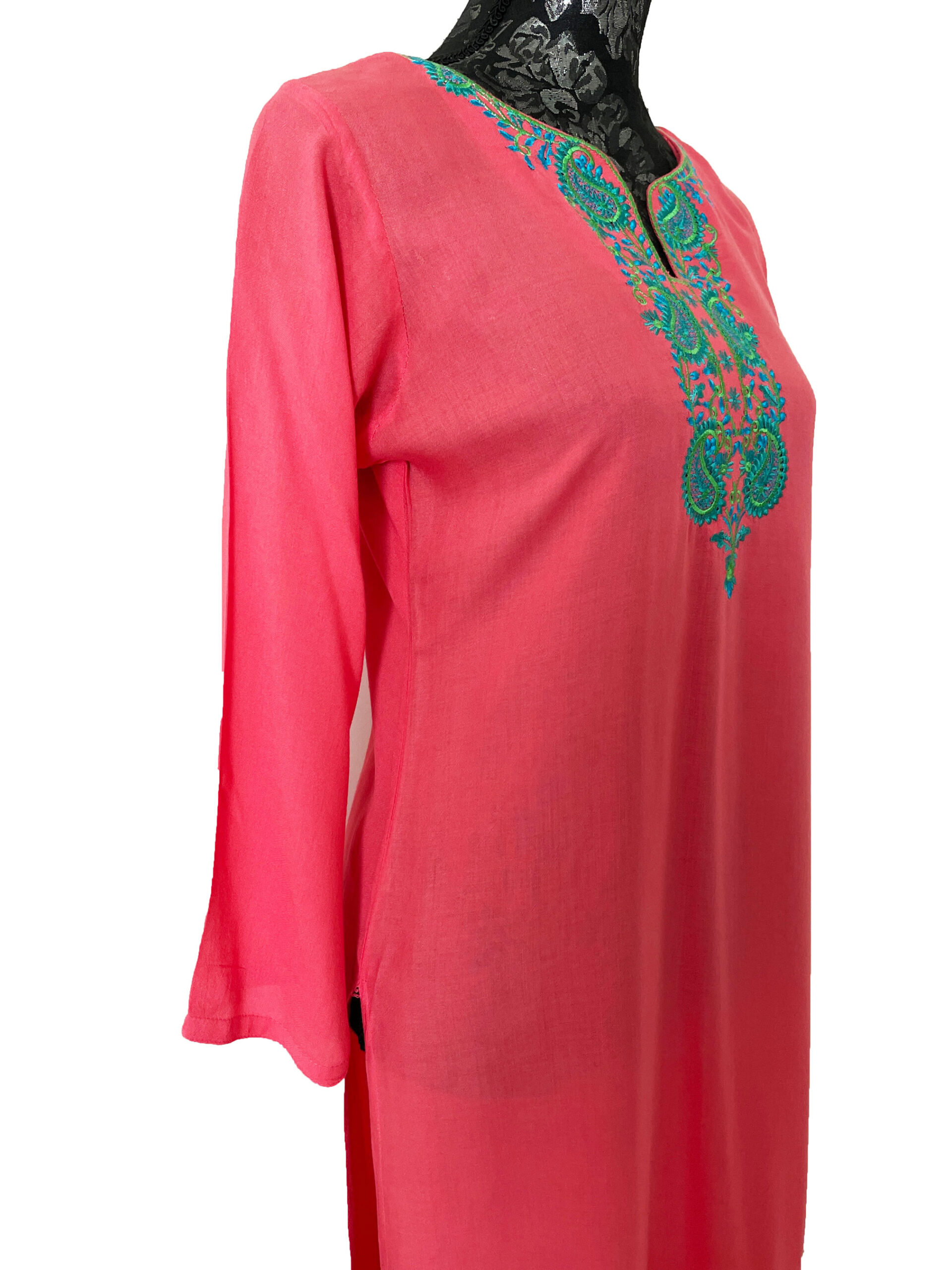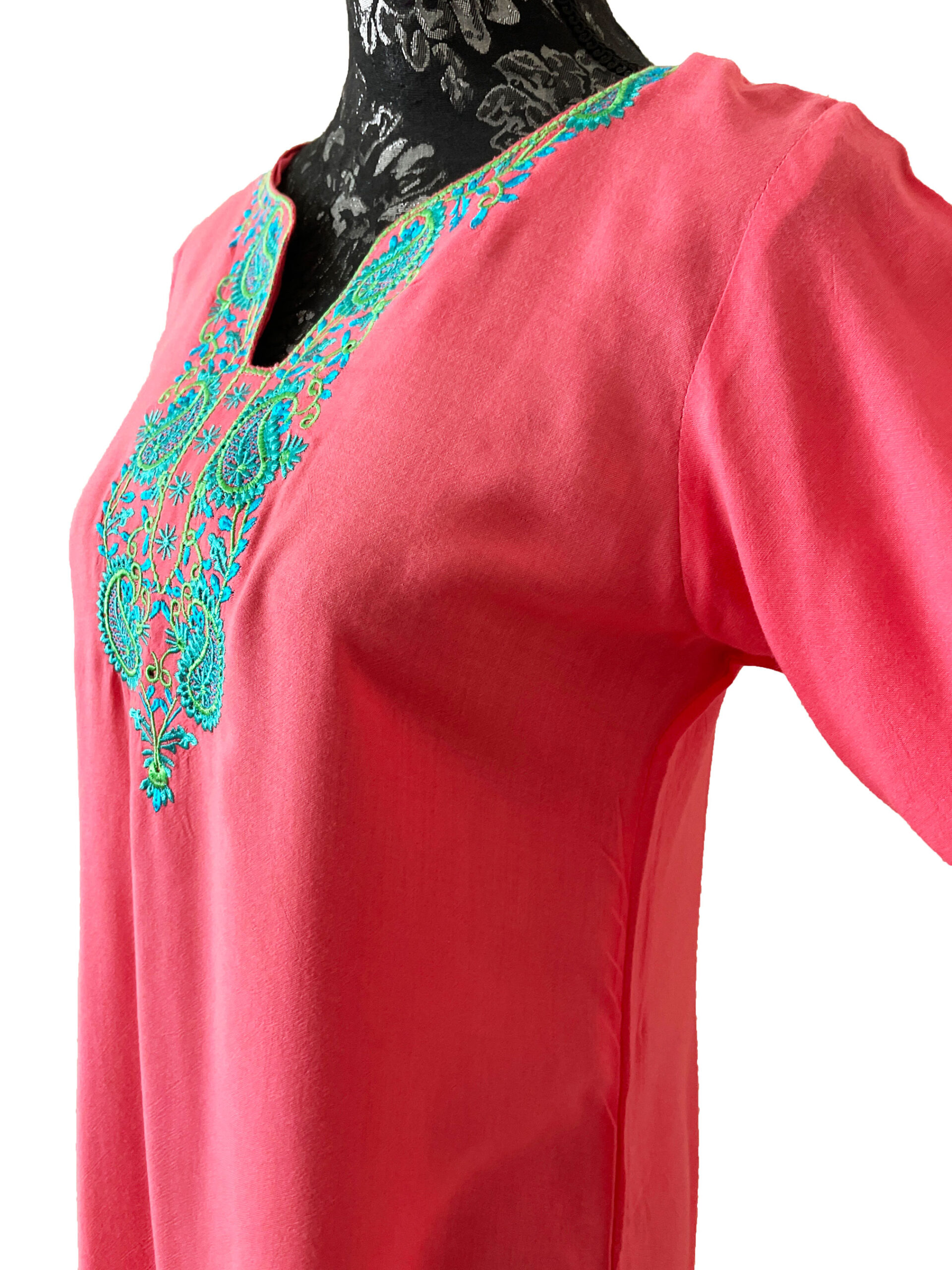 Beautiful embroidered Kurti Tops, Long Tunic dresses in sunshine yellow and brick orange colours with elegant embroidery ideal for casual or evening wear.
